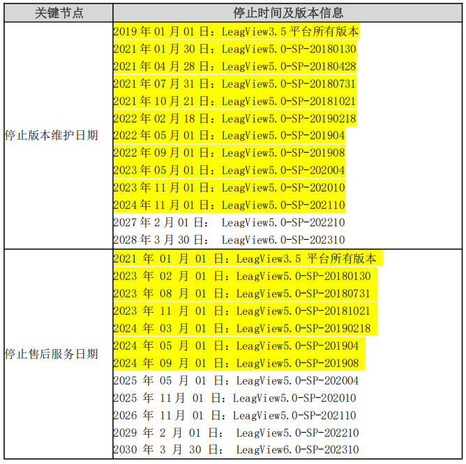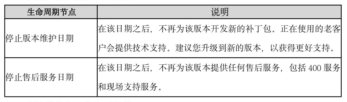 联软科技每年在 6、12 月份发布长期支持的软件版本,现对公司产品生命周期管理各时间节点明确,如下表格所示: