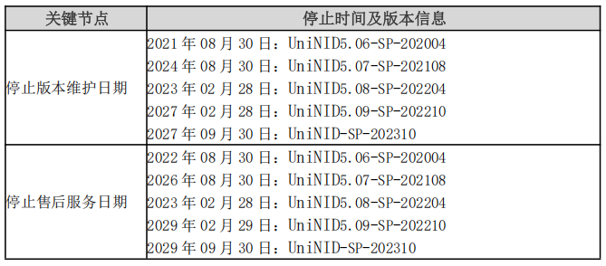 联软科技每年在10 月份发布长期支持的软件版本,现对公司产品生命周期管理各时间节点明确,如下表格所示: