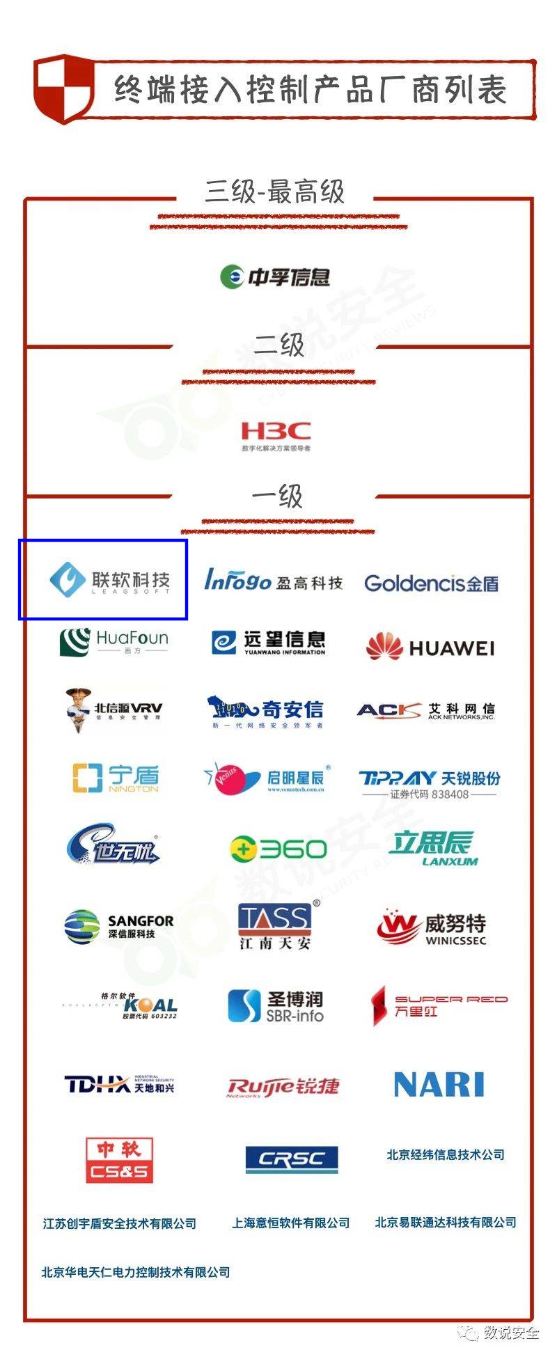 2020年9月24日,赛博英杰旗下网络安全垂直领域智库平台“数说安全”正式发布《中国终端接入控制市场全景图》(简称全景图)。作为中国企业半岛在线领域的领导者,国产自主安全可控的网络安全管控技术领军厂商、全球较早的网络准入控制厂商之一,联软科技强势上榜全景图。