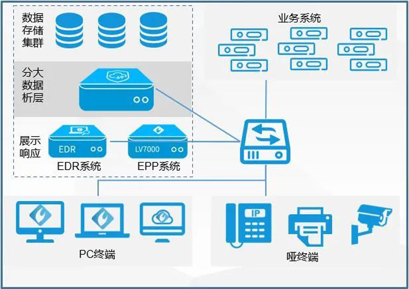 在端点上实施防御能够更加全面地搜集安全数据,精准地识别安全威胁,再通过全面的终端安全大数据进行告警信息的回溯排查,梳理威胁链条,定位全网终端风险点,进行快速处理,提供相关报告。