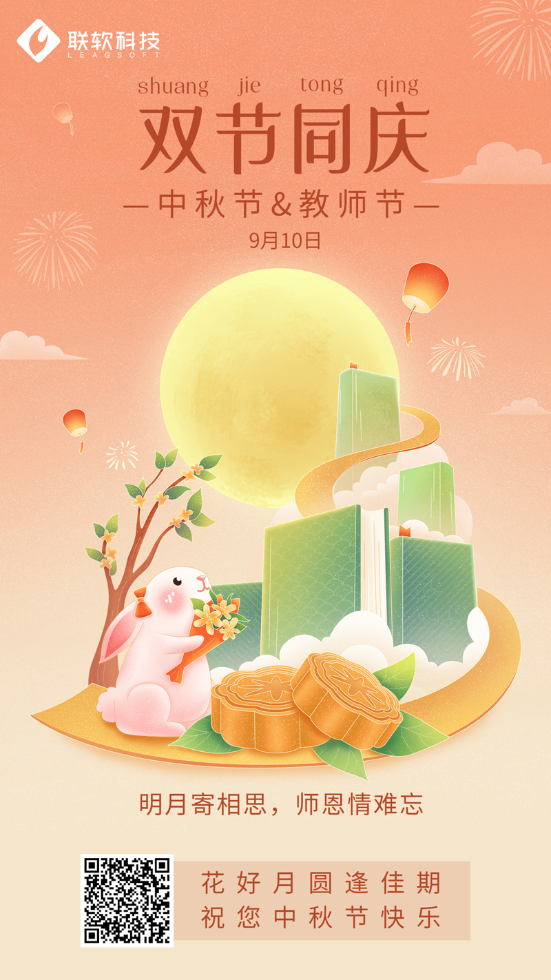 今年的中秋在9月10号,当日也是教师节,花好月圆,双节同庆!值此中秋佳节来临之际,联软科技祝您中秋节快乐!身体安康,万事如意,阖家幸福,前程似锦!