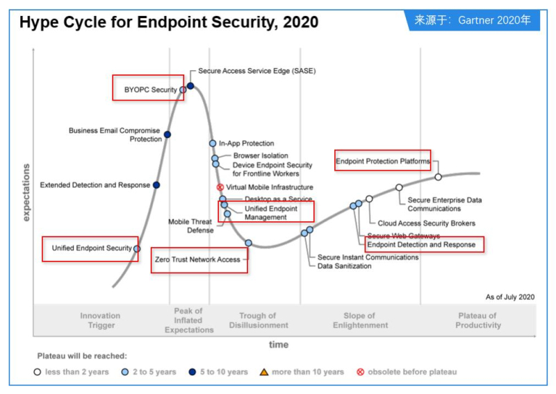 根据Gartner2020年半岛在线技术成熟度曲线提出,越来越多的用户希望能够基于一个平台对所有终端进行安全管理。