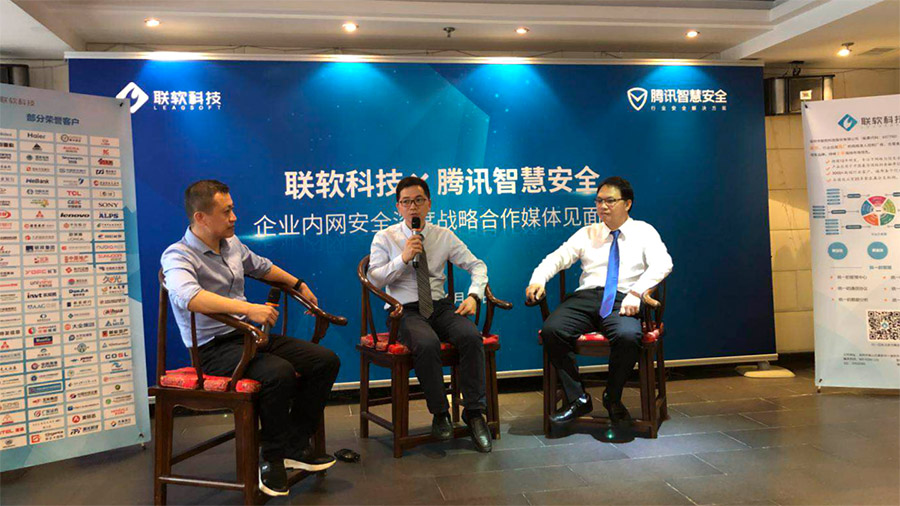 2018年9月13日,联软科技携手腾讯智慧安全在北京召开媒体见面会,在网络安全与信息化、申耀科技观察、中华网、中国报道、中国产经新闻、参考消息、钛媒体、企业网、安全牛、doit等30多家媒体的共同见证下,正式宣布双方成为深度战略合作伙伴,并共同发布企业内网安全管控解决方案,将双方的产品深度整合,为银行保险、证券、运营商、交通物流、能源、制造、零售等行业客提供统一管控的平台级解决方案。
