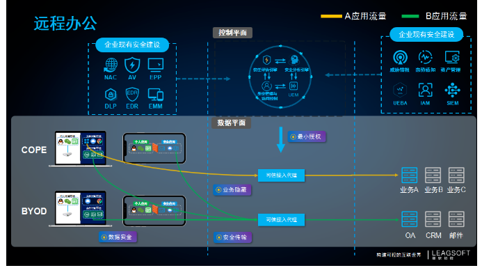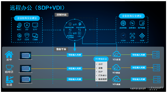 以联软科技UniSDP软件定义边界系统为核心的零信任远程办公解决方案,基于零信任理念,运用动态的细粒度访问控制技术、网关隐身单包授权协议,同时在零信任基础上,创造性的增加可靠的终端安全沙箱功能,水印追溯,模块化平台架构和开放的生态合作体系,实现用户动态授权访问,确保接入企业的身份可信、终端可信、网络可信、应用可信。同时也能与VDI产品无缝结合,实现更安全的远程接入方案。目前联软的SDP方案已在证券金融行业中得到成功运用,并在疫情期间帮助了企业实现正常业务运转。