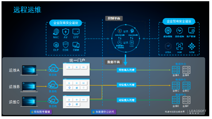 联软科技推出基于零信任理念的远程运维解决方案,以UniSDP软件定义边界系统为核心,在正式接入运维前,通过SPA预认证技术,对运维人员身份以及远程运维终端进行身份合法性校验,并且对运维终端进行安全接入检查,确保环境及身份安全可信后授权接入。在远程运维过程中,对运维终端及操作行为进行持续信任评估,一旦发现威胁和异常,立即进行动态访问控制,同时提供终端数据安全防护能力,防止运维过程中造成敏感数据泄露。在整个运维周期间,对接入、访问、操作、退出等行为进行全面的审计记录,远程运维结束后为管理员提供丰富的审计数据,可及时发现问题并溯源。在用户体验方面,提供统一运维门户,将远程运维系统及工具统一发布,统一运维入口。支持多种扫码认证方式,结合SSO单点登录功能,实现扫一扫即可轻松完成认证,最大程度提升运维效率,为企业提供安全、便捷、高效的远程运维环境。