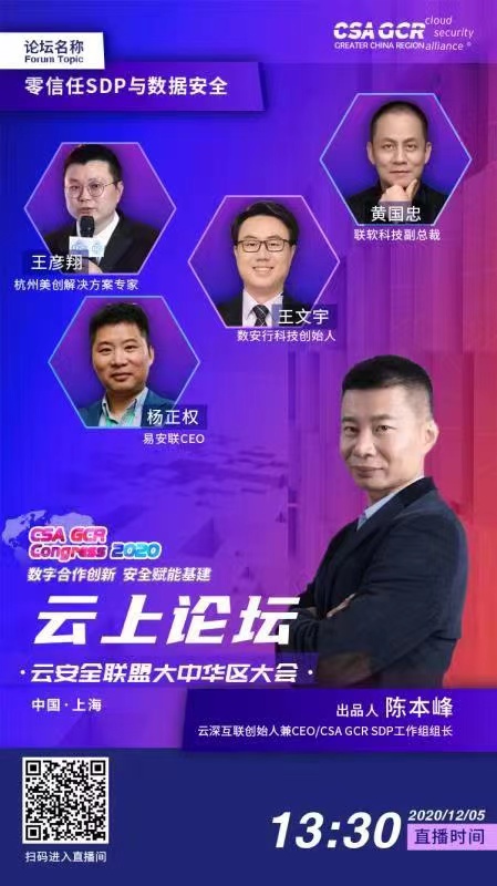 明日(12月5日)13:30,在2020云安全联盟大中华区大会云上(线上)论坛中 ,针对云应用安全、5G时代物联网安全的挑战和策略,联软将分享在零信任SDP与数据安全的经验和见解,精彩继续!