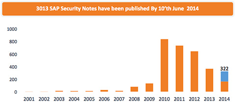 2.外界对于SAP的安全漏洞的兴趣增长迅猛。 由第三方发现的漏洞数量从2000年不到10% 到如今的超过60%。