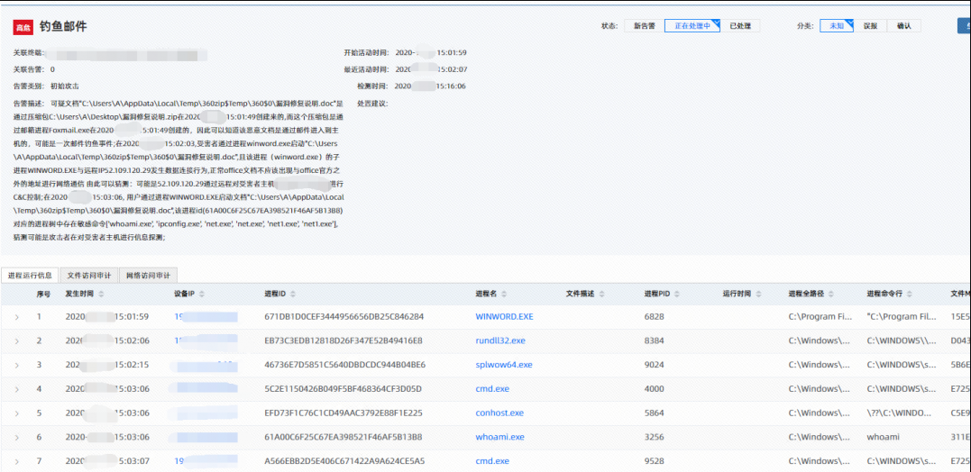 以下是联软UniEDR终端检测与响应系统捕获的一起通过邮件附件钓鱼的真实事件: