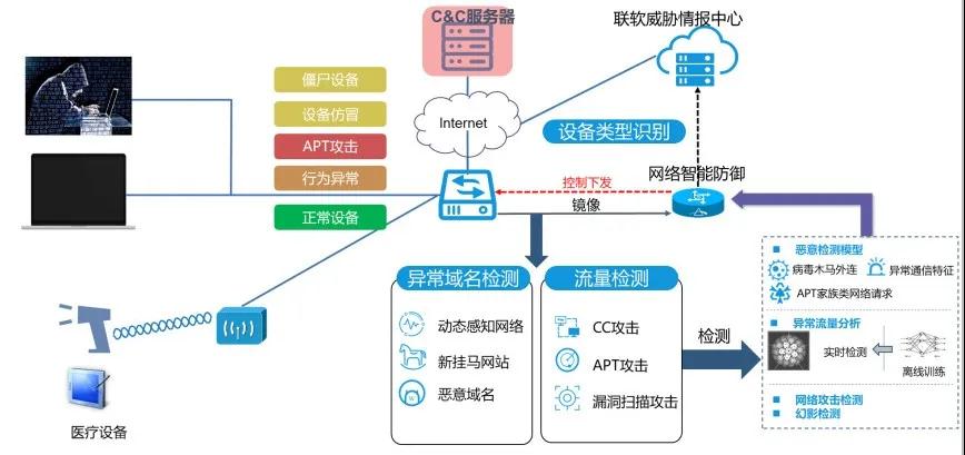 UniNID网络智能防御系统作为联软下一代网络准入控制系统,以资产为视角提供安全可视,实现包括IOT设备在内的各类资产风险识别,安全防护无死角;对终端进行持续性的安全威胁检测,准确发现内部失陷终端,快速进行攻击检测与响应,有效发现威胁并及时阻止威胁扩散。