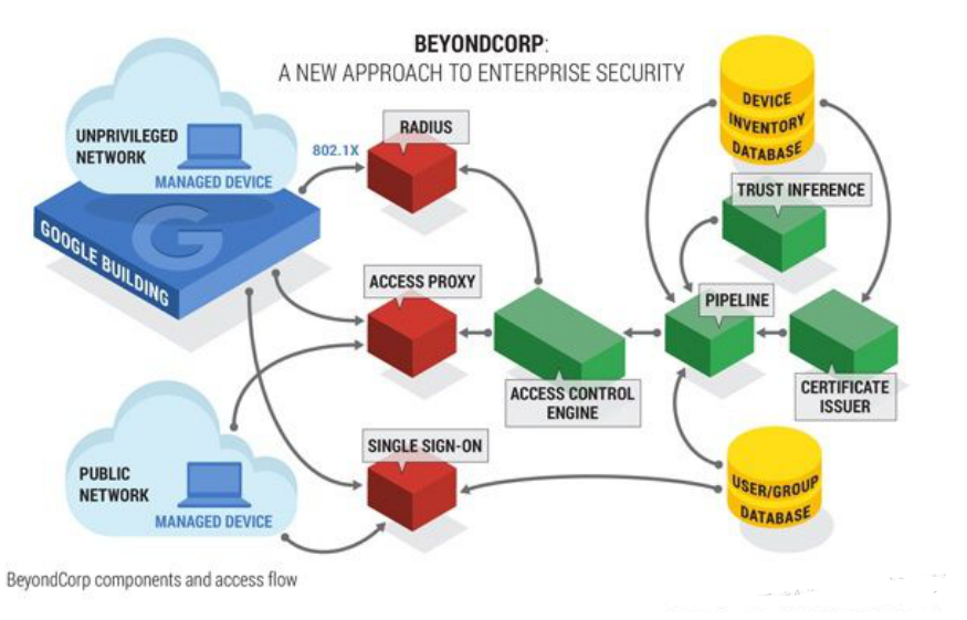 另外一个例子我们以谷歌BeyondCorp项目为例。2009年“极光行动”席卷全球使得Google意识到并开启了全新的“零信任”概念,从而诞生了BeyondCorp项目。在这个方案中,Google做的第一件事就是了解公司的人员与设备情况。据了解,Google的零信任安全架构涉及复杂的库存管理,记录具体谁拥有网络里的哪台设备。设备库存服务来从多个系统管理渠道搜集每个设备的各种实时信息,比如活动目录(Active Directory)或Puppet。