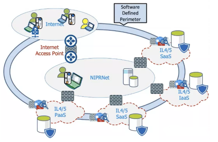 在2020年9月16日举行的“TechNet网络研讨会”上显示了美国国防部网络架构和网络安全架构的演变过程,在2020年代中展现为云优先,用户/端点无处不在的场景,图中的SDP环是对国防部计划实施零信任的解释,同时也说明了,对于端点的管理是零信任计划的重要一步。