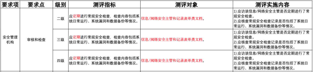 ▲图2-2 安全管理机构-审核和检查-测评要求