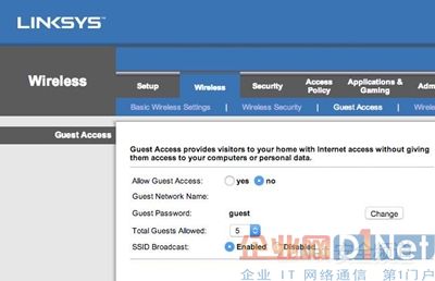 有些路由提供访客接入的功能。虽然这种功能通常会把你的家庭网络和临时使用网络的访客隔离开来,但是一些黑客也有能力跨过安全壁垒,访问整个网络。如果你不想让别人访问你的网络,最好是禁用这一性能。