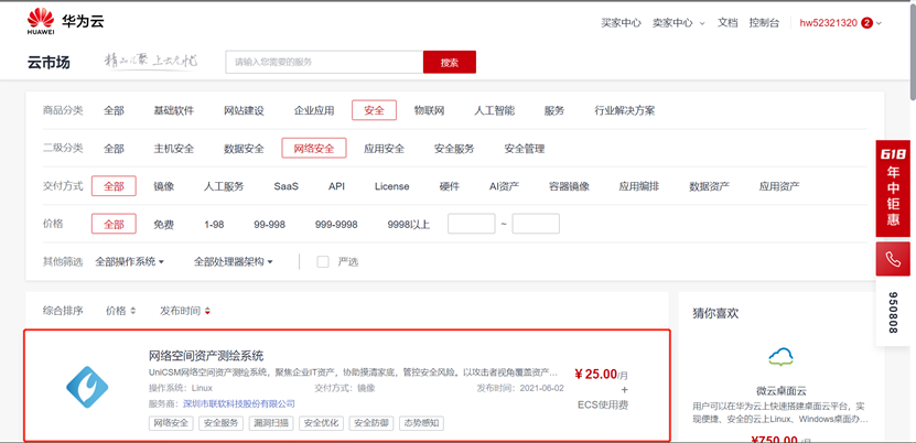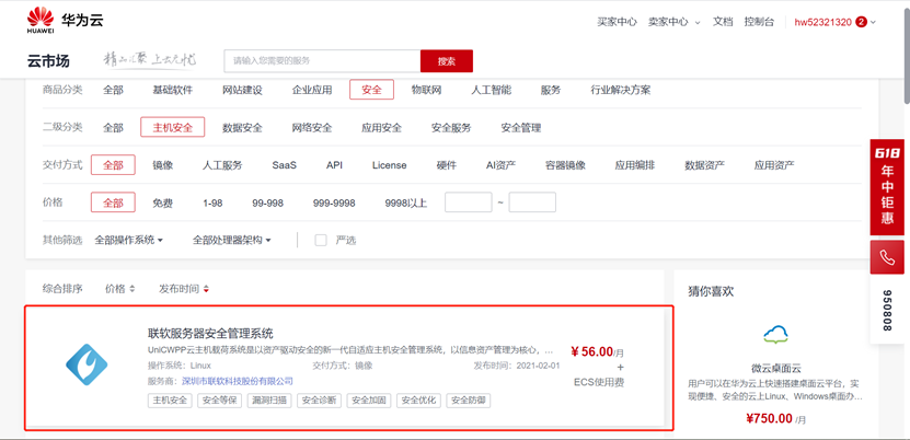 联软UniCWPP和UniCSM两款产品在华为云云市场具体位置如下图所示: