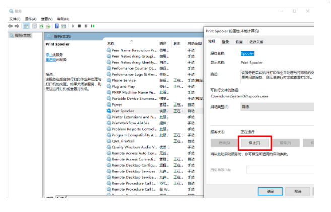 然后暂停打印机服务,如下图所示: