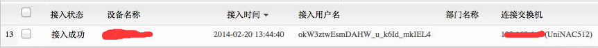 微信准入控制认证后,在UniNAC审计信息中会留下记录,接入用户名为加密后的唯一ID,后续会对ID和昵称进行解析。