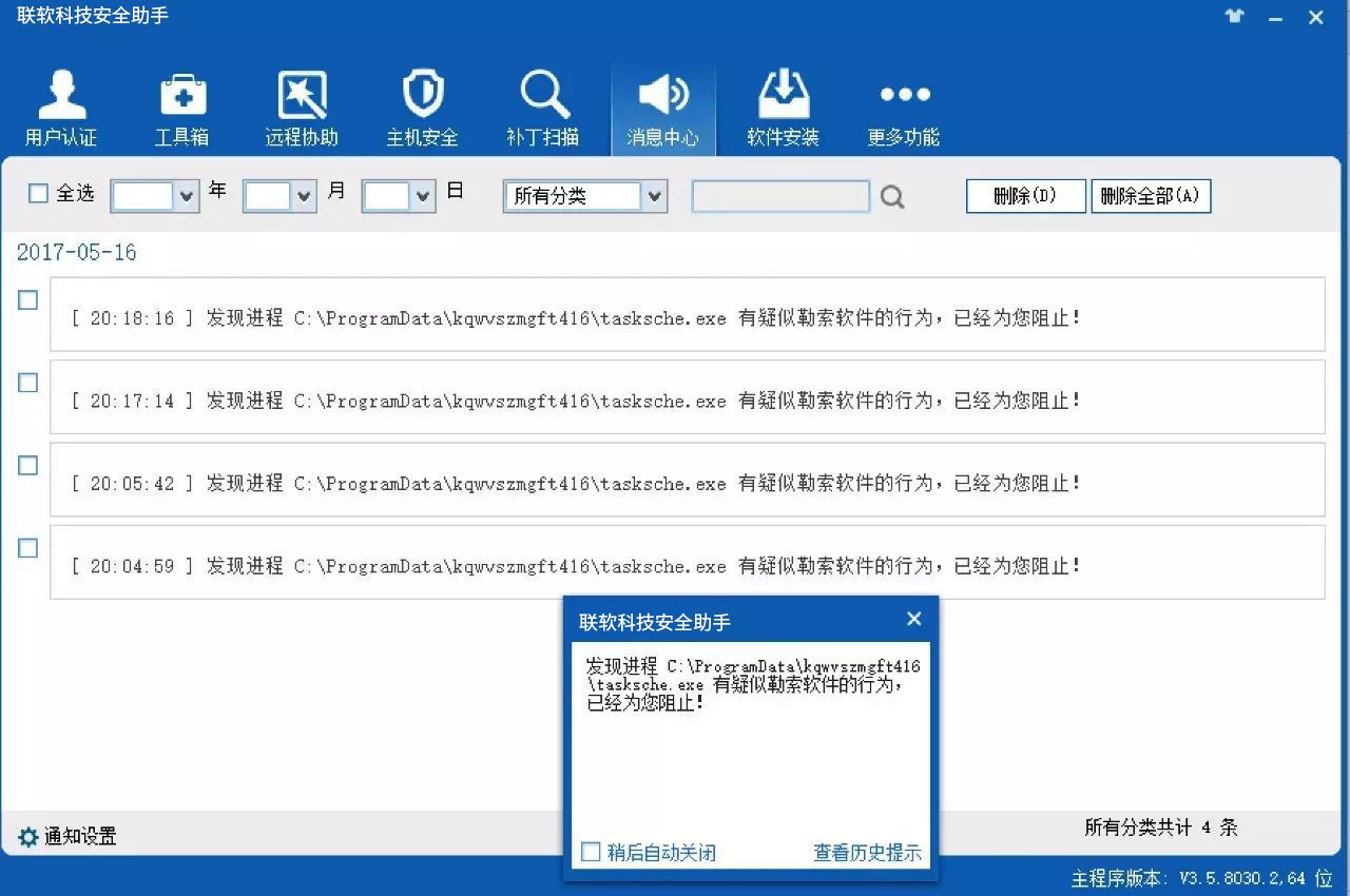 勒索软件的关键在预防,除部署联软的系统之外,用户还应及时对重要文件进行备份,同时经常将安全软件进行更新。