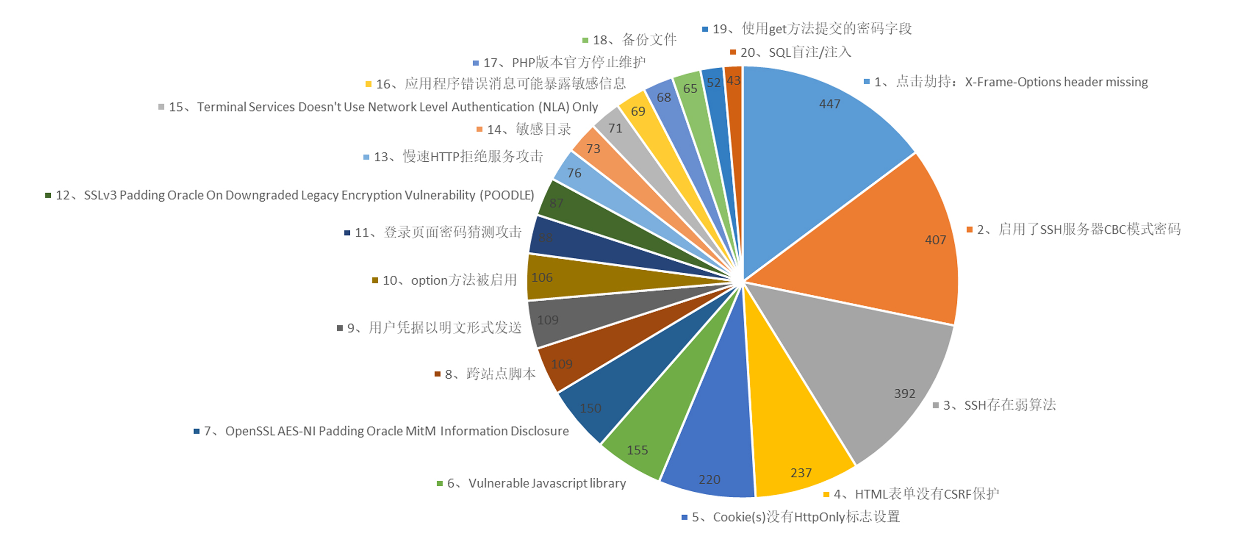 从抽样监测分析的结果来看,目前互联网金融行业的网络安全情况不甚乐观,存在的风险较高,其中,跨站脚本、PHP版本官方不提供安全补丁和SQL注入为TOP3高危漏洞。对于中低危漏洞,经统计,点击劫持漏洞占整个web漏洞数量约8.5%,即用户在不知情的情况下被伪装的按钮挟持,极易诱发财产流失。部分企业的安全防护意识和投入不足,对安全漏洞可能带来的风险认识不到位。