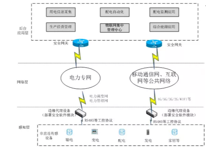 3、边缘代理设备边界安全控制:针对泛电力物联网中大量温度、湿度等传感设备,一般通过边缘计算设备接入后台,建议利用联软科技提供的软件模块嵌入边缘计算设备,采用零信任机制,所有接入的边缘计算设备通过双向接入认证后,方可连接到接入网关访问后台相关业务,同时数据采用加密传输确保数据传输的完整性和机密性,同时所有业务隐藏在安全网关之后,减少了业务服务器的攻击面,确保了后台业务安全稳定运行。