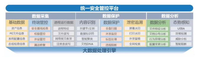 数据安全保护的本质是保护数据安全的使用、存储和传输,防止企业的数据或信息资产以违反安全策略的形式被非授权访问。当前企业内部众多终端和人员带来的数据存储和操作风险是发生数据泄露的重要源头之一,数据不落地、加密存储、桌面云等安全措施存在系统资源消耗大、应用范围有限、用户体验不好、文件交换流转不方便等问题。随着大数据技术的逐渐成熟,使得内容识别与分析功能更加完善,可以更智能化的构建和优化安全策略,更有效地对策略违规情况进行监控和管控。因此,随着水印技术、文档标签追溯、UEBA、大数据分析等技术的不断融合,基于对实体和用户活动进行持续的监测与分析的理念也越来越得到重视,及时发现潜在的违规操作和泄密行为是当前数据安全保护工作一个可供选择的解决方案。