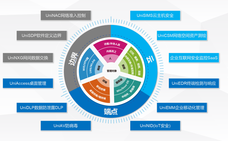 将网络接入管控、终端与手机设备管控、DLP/沙盒/加密/水印/数据流转管控/文档追踪/行为与内容审计等数据管控技术有机整合,形成一个覆盖各种场景的数据防泄露体系,防范敏感数据被内部人员泄露或外来黑客窃取。