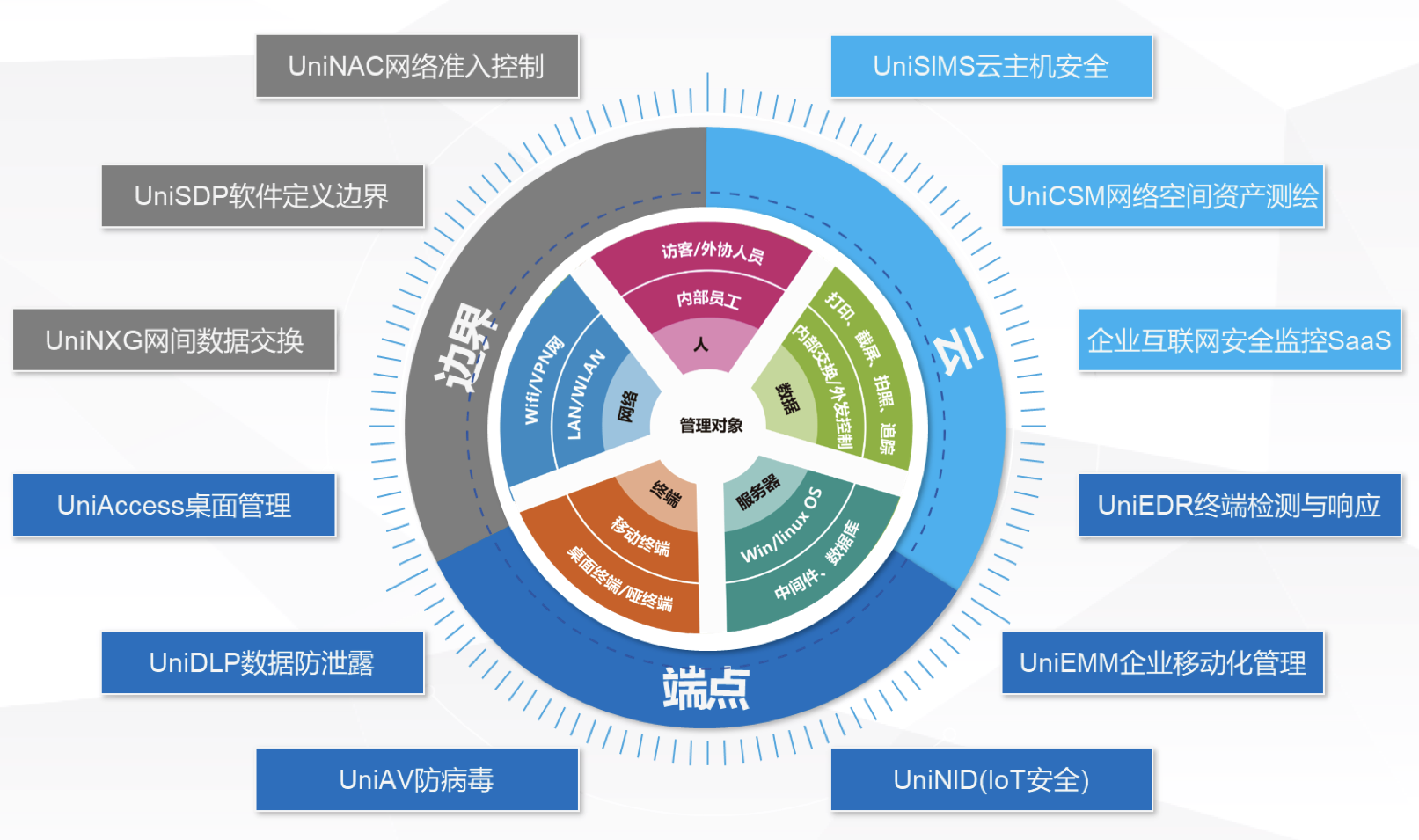 联软科技的全新一代企业级安全管控平台集网络准入控制、终端安全管理、BYOD设备管理、杀毒管理、服务器安全管理、数据防泄密、反APT攻击等系统于一体,全方位地保障医院安全。