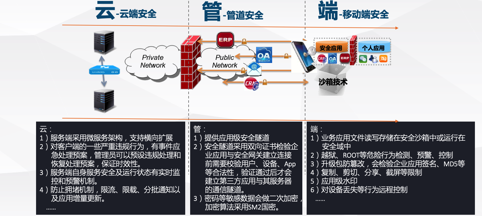 随着移动互联网的快速发展,移动办公和移动产业是大势所趋,企业在移动信息化建设过程中都面临着如何安全地将应用部署到移动设备上去,如何保障应用在不安全的网络环境下,依然能够安全地访问业务,如何对这些移动终端进行统一安全管控,还有如何保障我们企业的数据不被泄密,这些都是整个行业所亟待解决的安全问题。