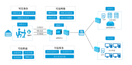 基于零信任安全架构,联软科技SDP远程办公解决方案通过可信身份、可信终端、可信网络、可信服务四个方面为银联商务打造新一代远程办公平台。