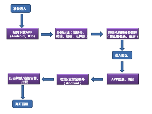 该机制通过技术手段保证了所有进入核心区域的人员的移动设备都处于企业的安全限制之下,解决了移动终端摄像头管控的难题,保障企业数据安全。