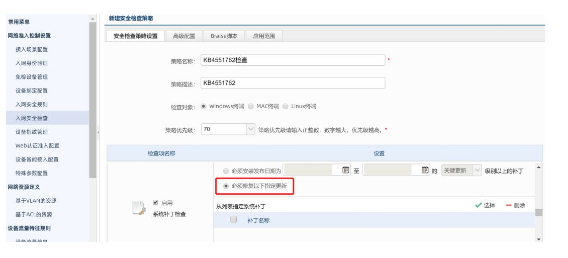 部署联软UniNAC网络准入控制系统的用户,针对此次漏洞,可在入网安全检查规则中,增加对KB4551762的检查,且要求更新安装指定补丁后才允许入网,在网络边界构筑安全防护。