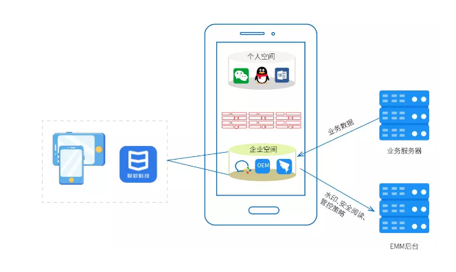 (2)公私隔离:通过虚拟隔离技术,无需配发专用设备,可以直接使用人个设备进行安全移动办公