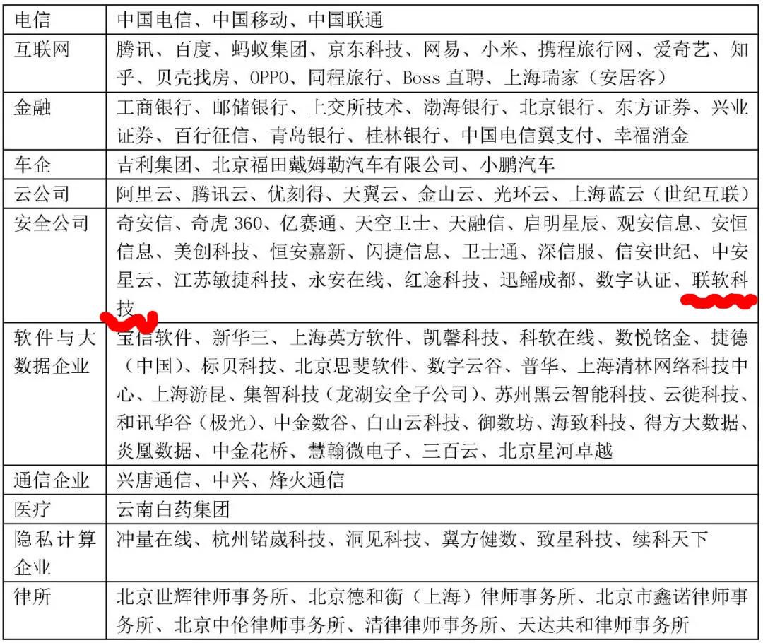 截至2021年9月30日,共有103家企业正式成为DSI参与单位。DSI参与单位均为业内龙头企业,行业广泛分布于金融、互联网、通信、汽车、安全厂商和医疗等领域。其中,联软科技凭借优秀的数据安全技术和市场表现,经过严格选拔成功入选,成为安全厂商领域代表加入企业。