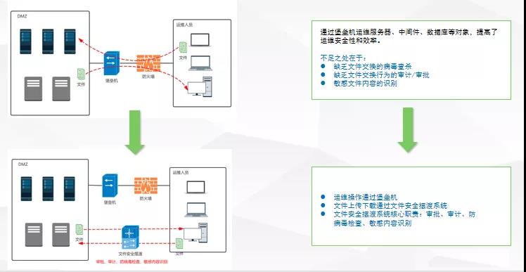 联软科技在自研的安全数据交换系统(UniNXG)的基础上,推出了与堡垒机相结合的方案,解决了企业数据中心管理过程中,数据进入不规范、数据泄露风险高、病毒木马入侵风险大等问题,让数据中心运维更有序。