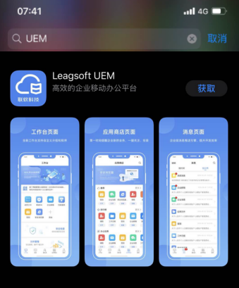 Leagsoft UEM iOS版本已经通过App Store的严格审核,现已正式上线啦!大家可以在App Store中搜索“UEM”即可找到并下载安装iOS版本。
