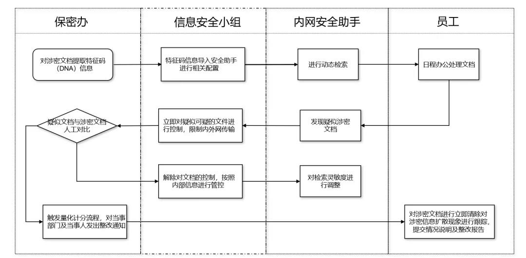 通过最佳实践制定了保密检查的管理流程,强化了部门协作,改变了以往只靠保密部门推动此项工作的被动局面,形成了各有关主管部门齐心协力、协调配合,共同推动保密管理,确保秘密安全。该方案有如下优势: