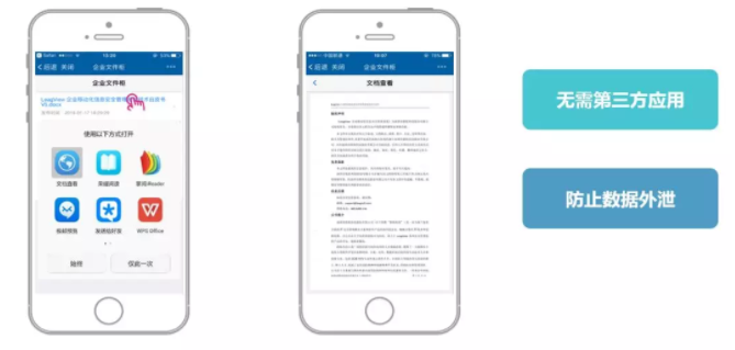 联软的UniEMM(企业移动安全支撑平台)内置的安全阅读功能即企业的安全文件柜,使用方便,可以在不额外安装第三方应用的前提下,满足用户的阅读需求,有效控制数据外泄。