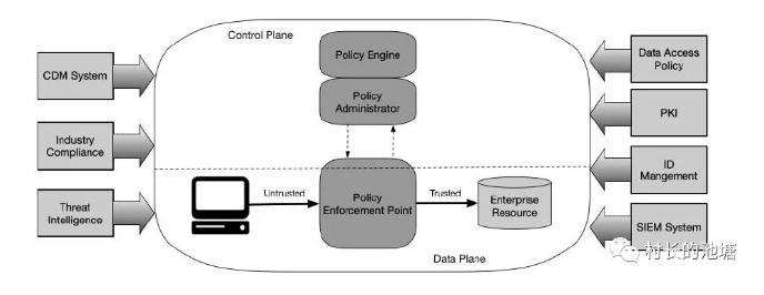 策略引擎(Policy Engine):该组件通过获取多方数据(如CDM、威胁情报)来最终决定是否允许指定的主体可以对资源进行访问。