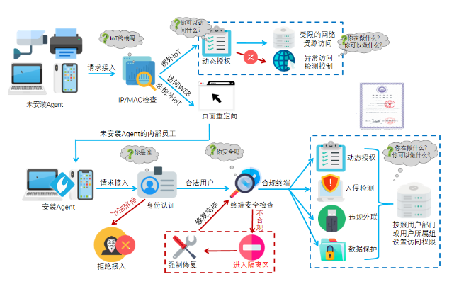 边界的接入认证和访问控制是涉密网安全控制的基础,也是分级保护技术标准中明确要求的必备设施之一,如果不构建涉密网的边界接入控制设施,在检查过程中如果发现,会被一票否决。因此,强烈建议用户为涉密网部署网络准入控制系统,通过该系统提供的访问控制策略,可实现基于用户的强制访问控制,防止未授权、非合规的设备接入涉密网,并对其资源访问权限进行控制,实现最小授权,防止越权访问非权限范围内的涉密信息系统资源。
