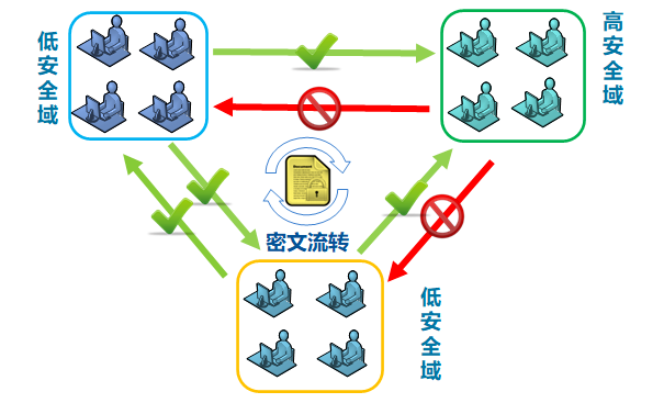 根据分保相关要求,所有安全域之间的数据通信必须安全可靠,应禁止高密级信息由高等安全域流向低等级安全域。通过联软文档智能加密系统,可将文件进行安全域分类,设置用户权限时,管理员可以自定义用户针对安全域文件的操作权限,如打开、打印等,最终可实现内部数据根据重要性进行安全域划分,高等级安全域的高密级信息不会流向低等级安全域,如保密部门的数据属于绝密数据,只能在保密部门内部流转,其他部门无法查看和使用保密部门的文件,但保密部门可以正常查看和使用其他部门的文件。