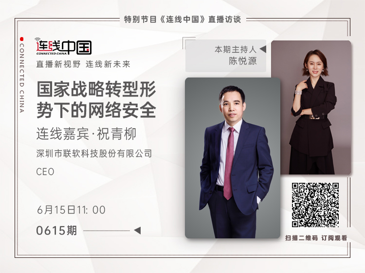 6月15日上午11:00,联软科技CEO祝青柳做客首档大型金融媒体企业家访谈节目《连线中国》,作为国内一档大型金融媒体直播访谈栏目,《连线中国》以“开创新视野、连线新希望”为口号,通过对话杰出企业家,讲述中国企业的故事,为中国品牌发声,传递中国经济破浪前行的决心与信心!面对国家战略转型形势下的网络安全,听联软如何发声: