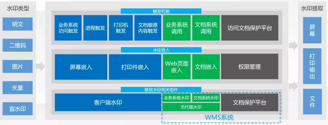 ●用户操作业务系统或文档时加载明文、矢量水印或盲水印;