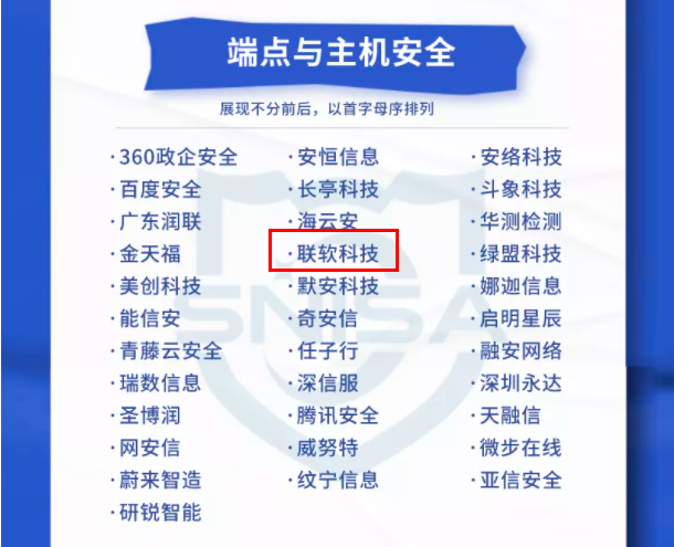 2021年12月23日,深圳市网络与信息安全行业协会发布了“网络与信息安全产品推荐厂商细分全景图”,联软科技成为多个安全领域推荐厂商。