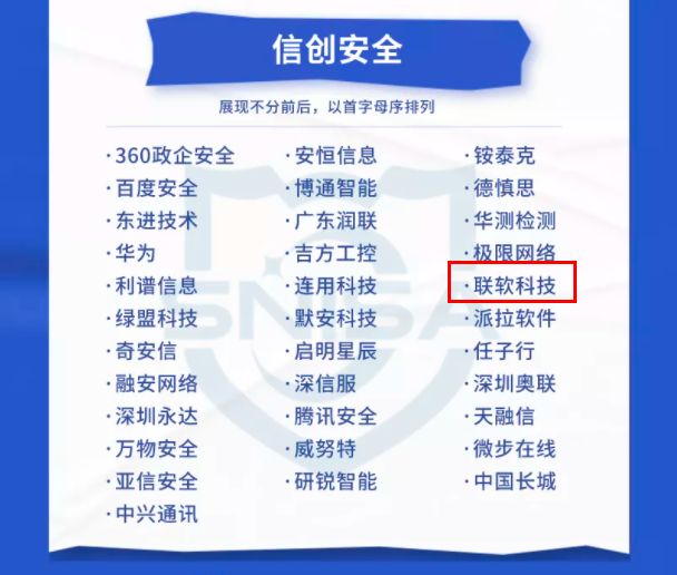 联软科技创立于2003年,专注于企业级网络安全市场,主营业务是为政企客户提供网络安全产品和服务。围绕半岛在线、边界安全和云安全,为客户打造了网络准入控制、终端安全管理、数据防泄露、数据安全摆渡、软件定义边界、网络入侵检测、移动端安全管理、云主机安全管理、互联网安全监控 SaaS 平台、网络空间资产测绘、终端检测与响应等产品的综合安全解决方案。