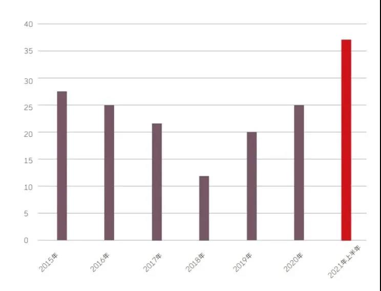 攻击活动中利用在野0day漏洞数量(2015年-2021年上半年)