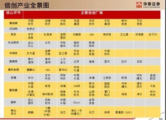 当前信创产业呈现百花争鸣的格局。芯片领域以龙芯、飞腾、鲲鹏、海光、兆芯、申威等为代表的主流芯片。操作系统领域以麒麟、UOS为代表的主流操作系统。从参与信创的企业来看,CEC、CETC、华为、联软科技等均在布局信创产业。