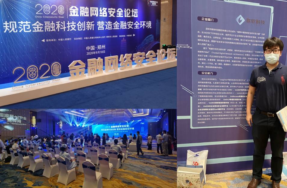 2020年国家网络安全宣传周“规范金融科技创新 营造金融安全环境”金融网络安全论坛在郑州举办。论坛采取现场+线上同步直播方式进行。来自全国银行、证券、保险和第三方支付机构等行业的120余位代表参加论坛。联软科技现场展示了在金融行业的多方成果和丰富的市场经验,目前联软科技的产品和服务遍布21大全国性银行中的13家,10大保险公司中的4家,证券交易所100%覆盖,证券行业市场占有率超80%,全方位解决金融行业的网络安全需求,助力行业数字化转型。