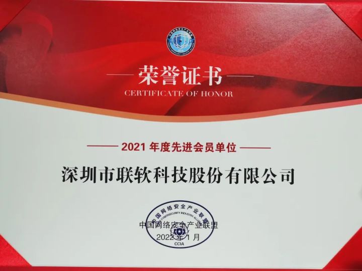再获殊荣!联软科技获中国网络安全产业联盟“2021年度优秀会员单位”表彰!