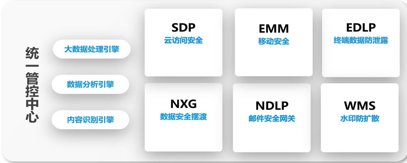 联软科技《数据安全解决方案》包含云安全访问、移动安全、终端数据防泄露、数据安全摆渡、邮件安全网关、水印防扩散6大组成部分,具有领先的大数据处理引擎、数据分析引擎和内容识别引擎,为用户提供全方位的数据安全防护支持。