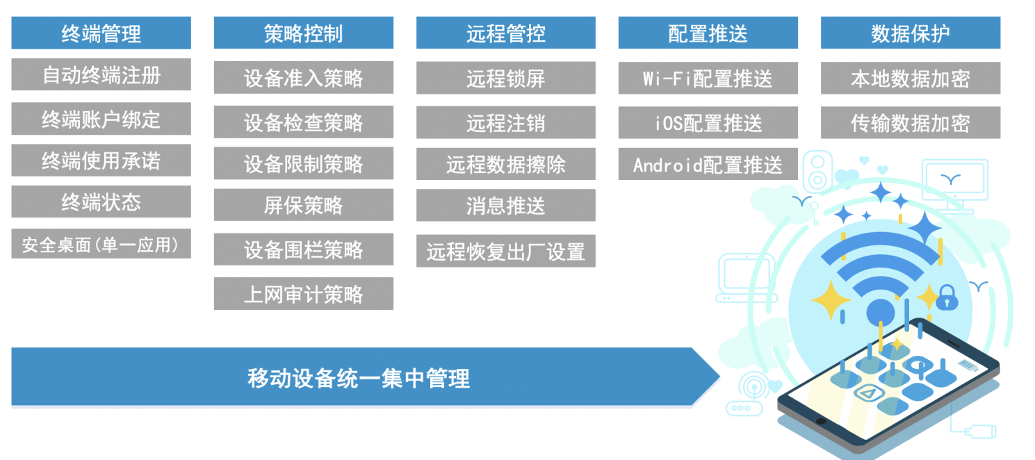 针对企业移动配发设备提供完整的解决方案,避免“专机私用”,保障企业业务正常运行