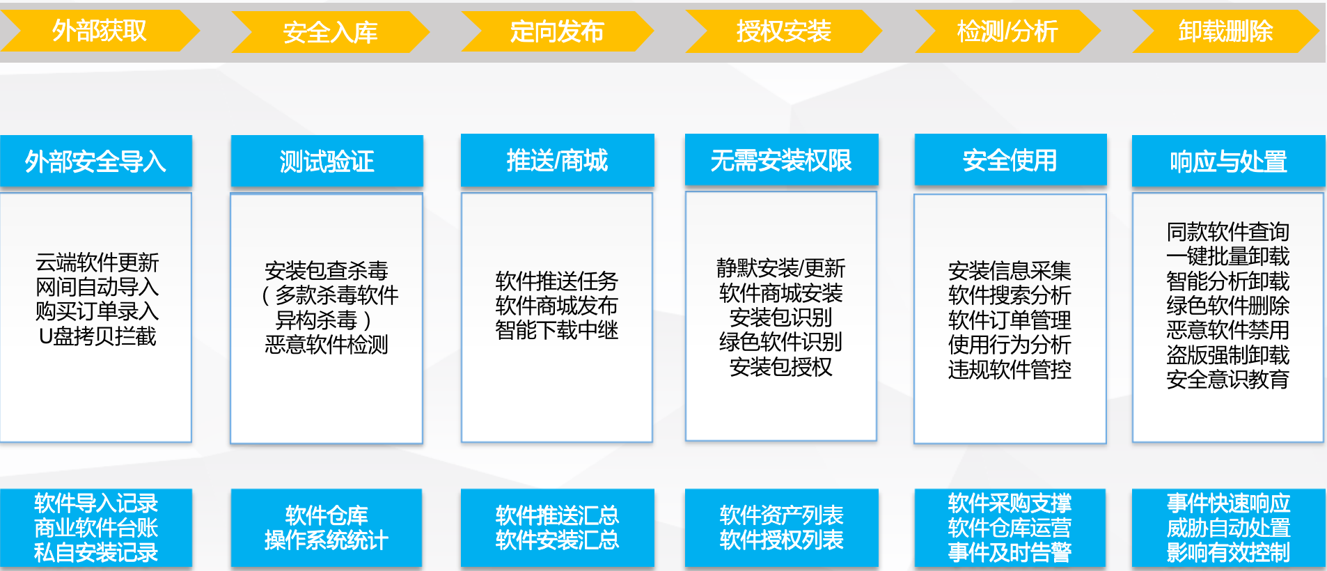 满足企业对软件正版化和标准化管理要求,建立基于软件生命周期的统一管理方案。